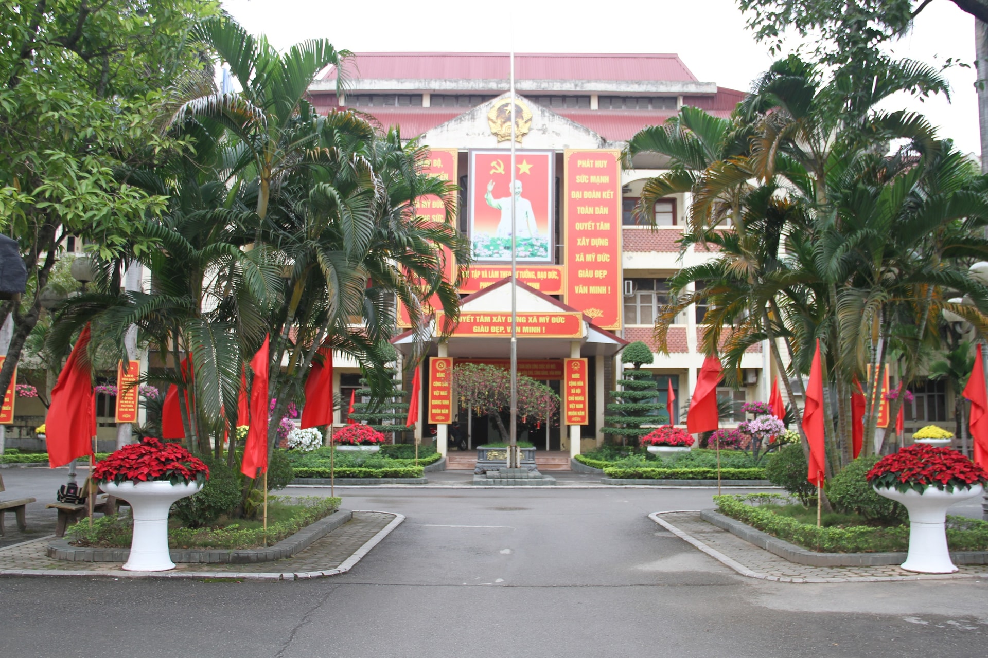 Trụ sở UBND xã Mỹ Đức rực rỡ cờ hoa chào năm mới Bính Ngọ 2026. Ảnh: Biên Phạm