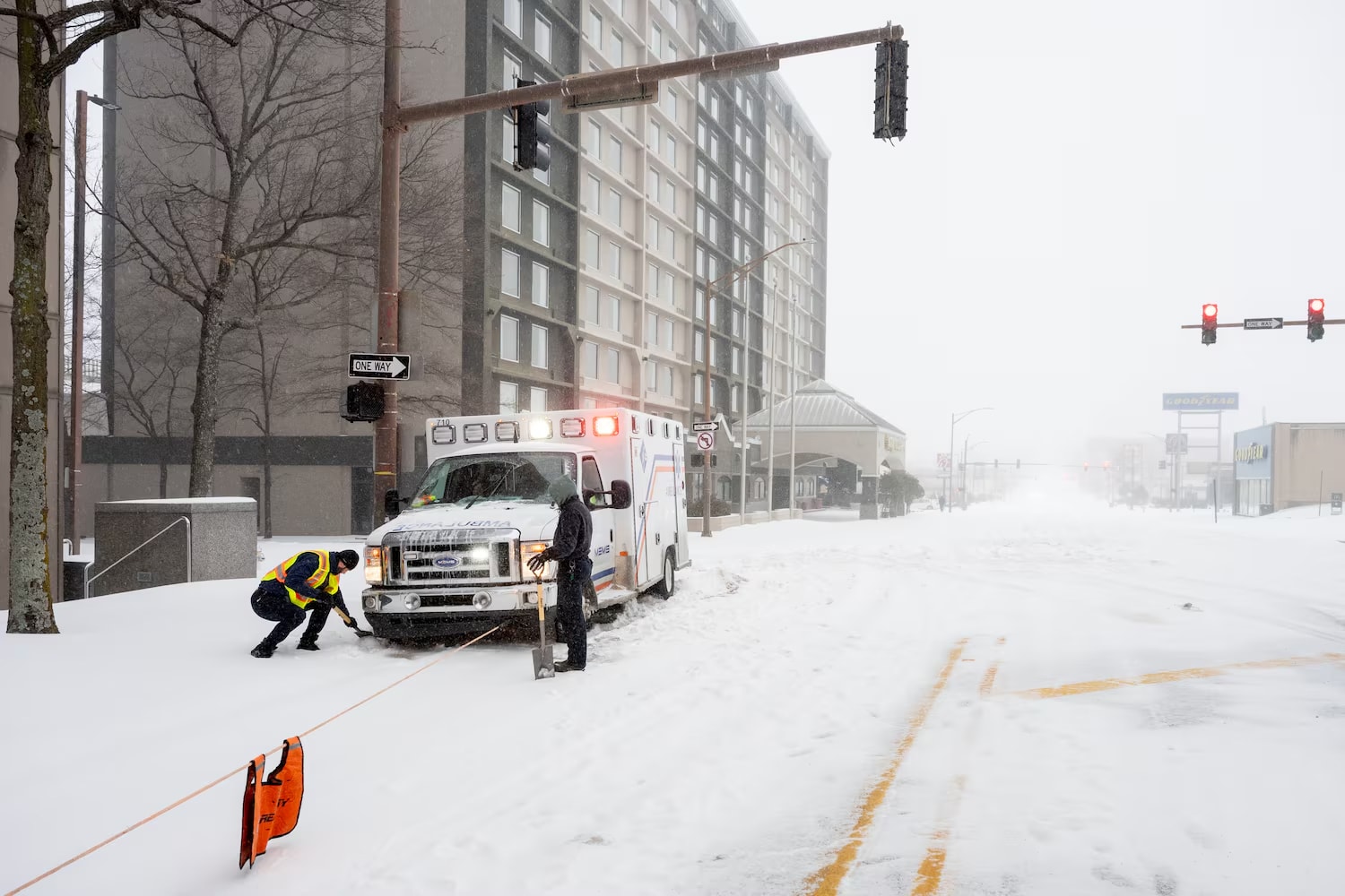 Tuyết phủ trắng tại Arkansas. Ảnh: The Globe and Mail