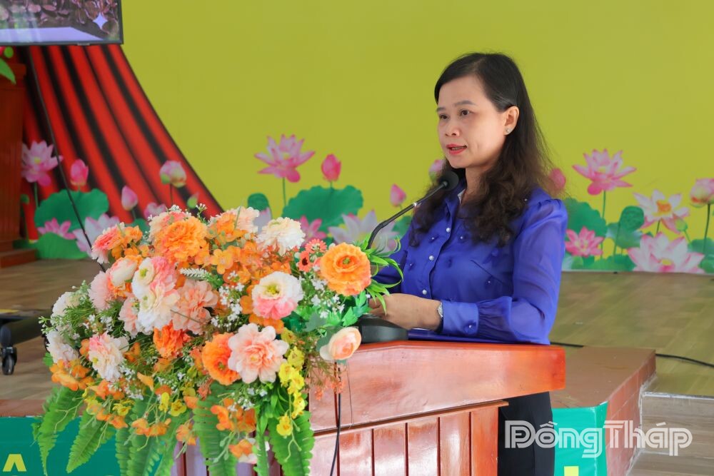 Đồng chí Trần Thị Bích Du, Bí thư Đảng ủy, Chủ tịch HĐND xã Mỹ Hiệp phát biểu khai mạc hội thảo.