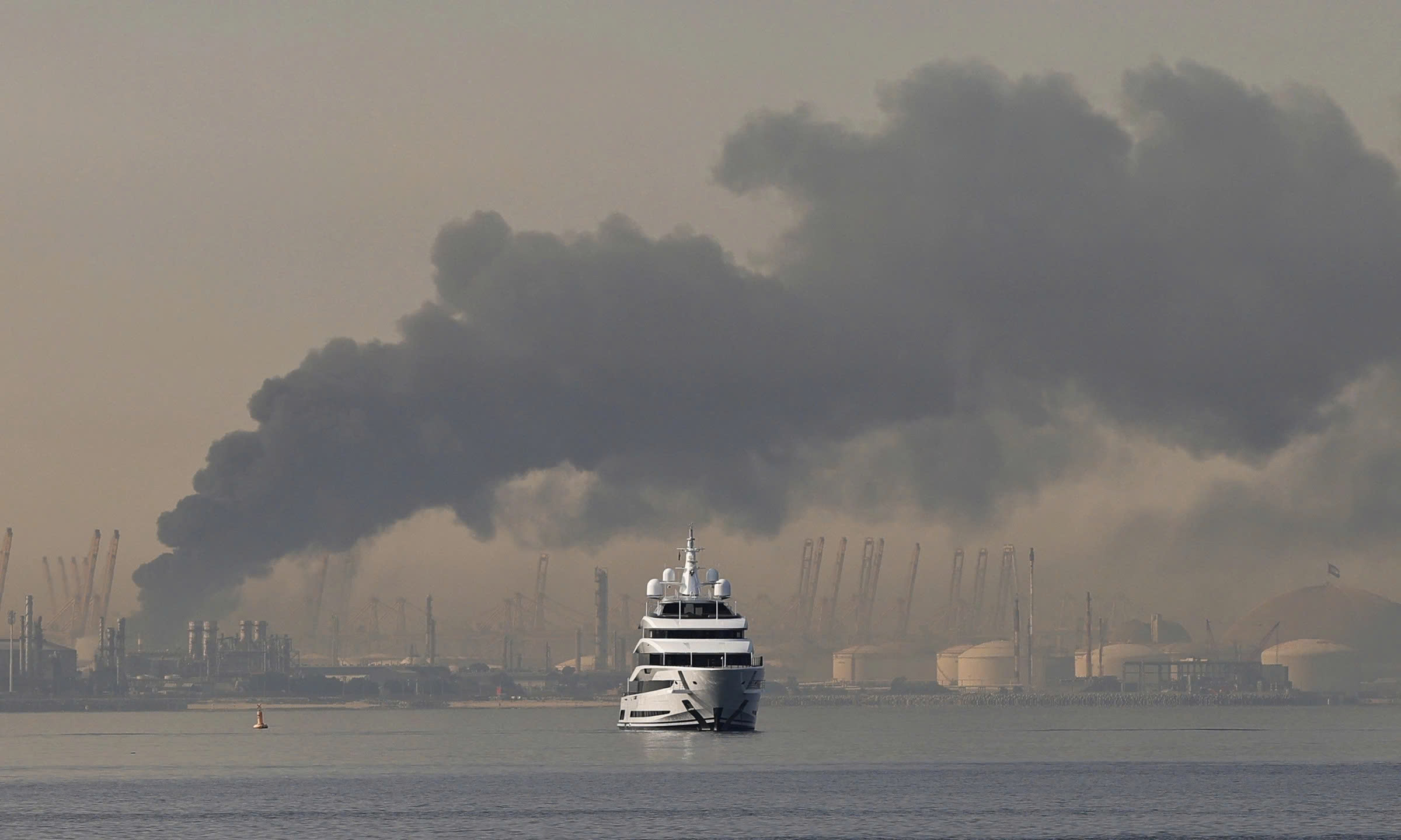 Cột khói lớn bốc lên tại cảng Jebel Ali ở Dubai. (Ảnh: Getty)