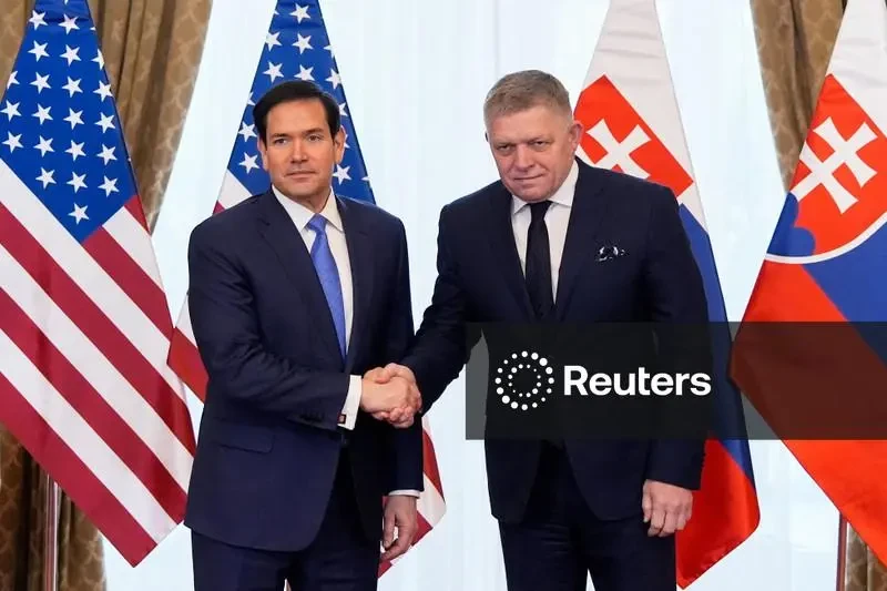 Ngoại trưởng Hoa Kỳ Marco Rubio và Thủ tướng Slovakia Robert Fico bắt tay nhau tại Bratislava, Slovakia, Chủ nhật, ngày 15 tháng 2 năm 2026. Ảnh: REUTERS