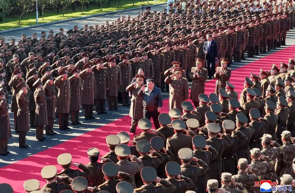 Lãnh đạo Triều Tiên Kim Jong-un tới thăm Quân đoàn 11 hôm 1-11. Ảnh: KCNA