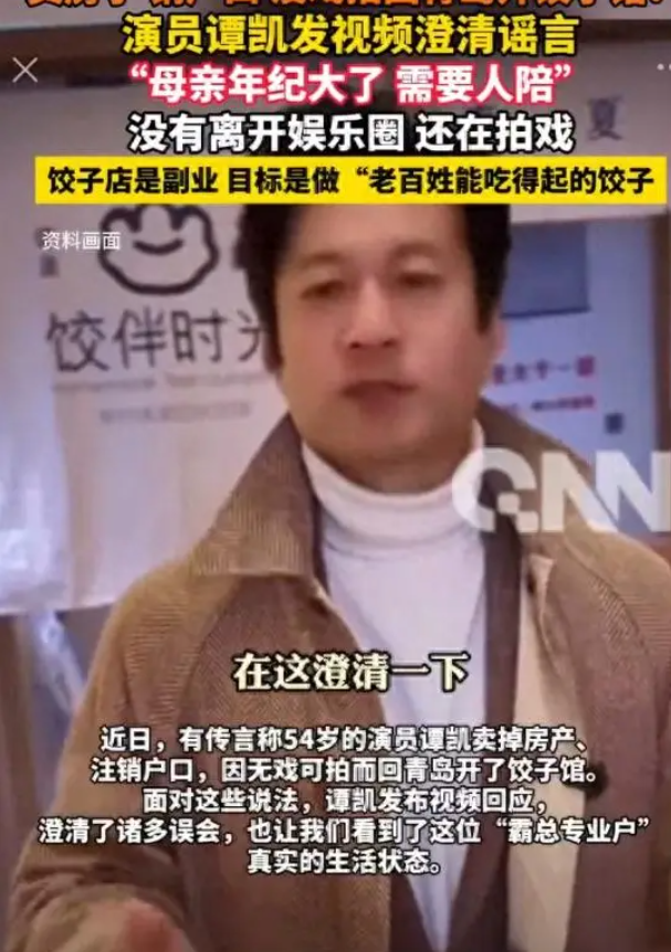 Những ngày gần đây, mạng xã hội Hoa ngữ xôn xao trước thông tin cho rằng nam diễn viên Đàm Khải, gương mặt quen thuộc với khán giả qua nhiều bộ phim truyền hình, trong đó có tác phẩm nổi tiếng Bên Nhau Trọn Đời, đã bán nhà ở Bắc Kinh, hủy hộ khẩu và rút khỏi giới giải trí vì "không còn phim để đóng", buộc phải trở về Thanh Đảo mở quán bánh bao, bánh há cảo mưu sinh. Thông tin lan truyền với tốc độ chóng mặt, kéo theo không ít đồn đoán về sự sa sút của một nam thần từng được xem là biểu tượng phong độ của màn ảnh nhỏ.