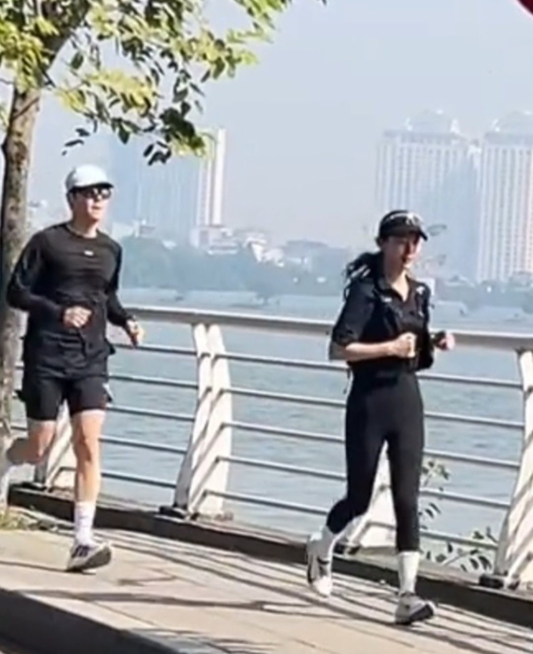 Kim Seon Ho và Suzy chạy bộ ở Hồ Tây, Hà Nội.