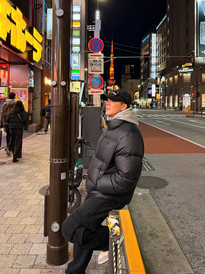 Những bức ảnh ghi lại khoảnh khắc anh dạo phố tại Tokyo (Nhật Bản) trong trang phục đời thường gồm áo hoodie và áo phao. Hình ảnh cho thấy nam diễn viên xuất hiện với phong thái thư giãn, nụ cười rạng rỡ trong chuyến du lịch cá nhân.