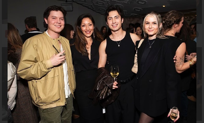Williams và bạn gái (áo đen ngoài cùng) tại tiệc ra mắt phim Heated Rivalry.