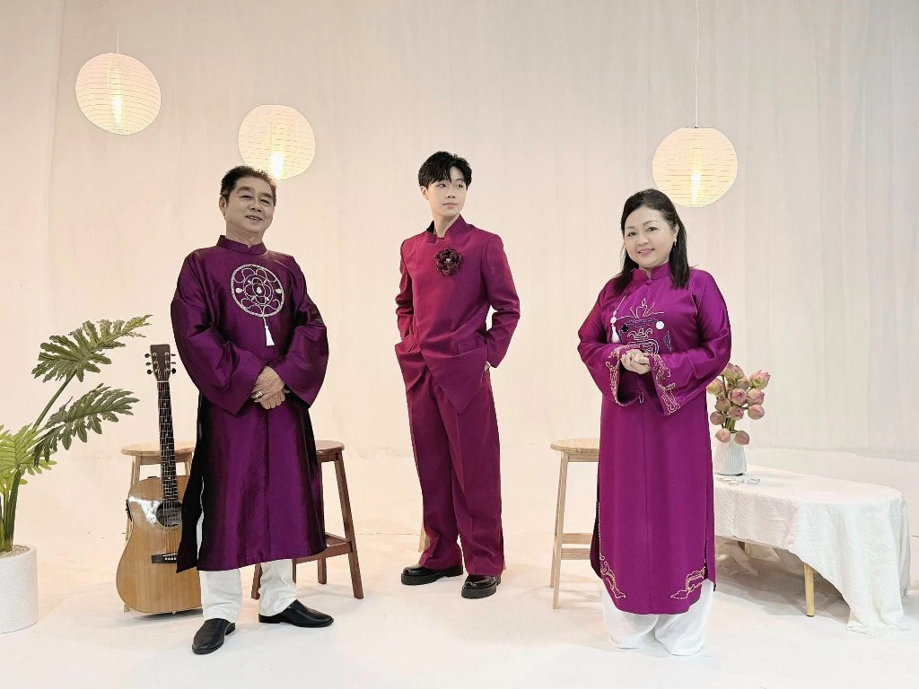 Trọng Nhân và ba mẹ trong một MV ca cổ ''Vầng trăng hiếu hạnh'' mùa Vu lan 2025.