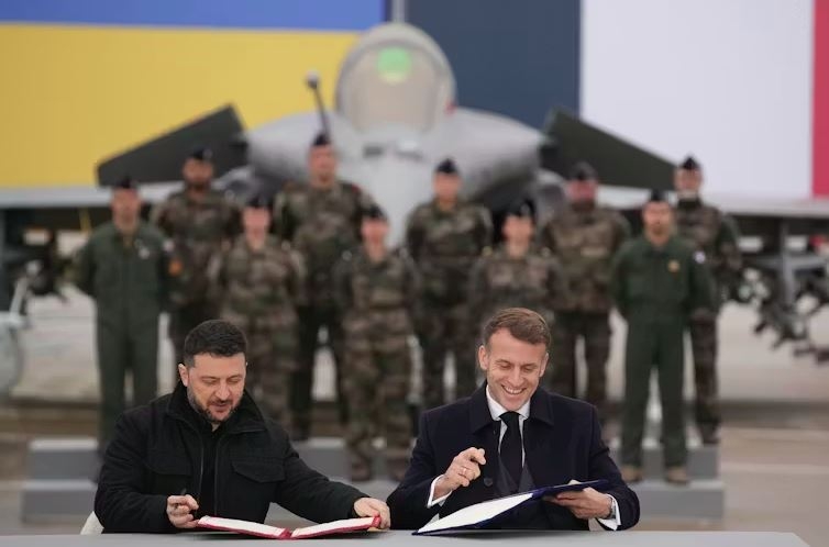 Tổng thống Ukraine Zelensky và Tổng thống Pháp Emmanuel Macron. Christophe Ena / EPA