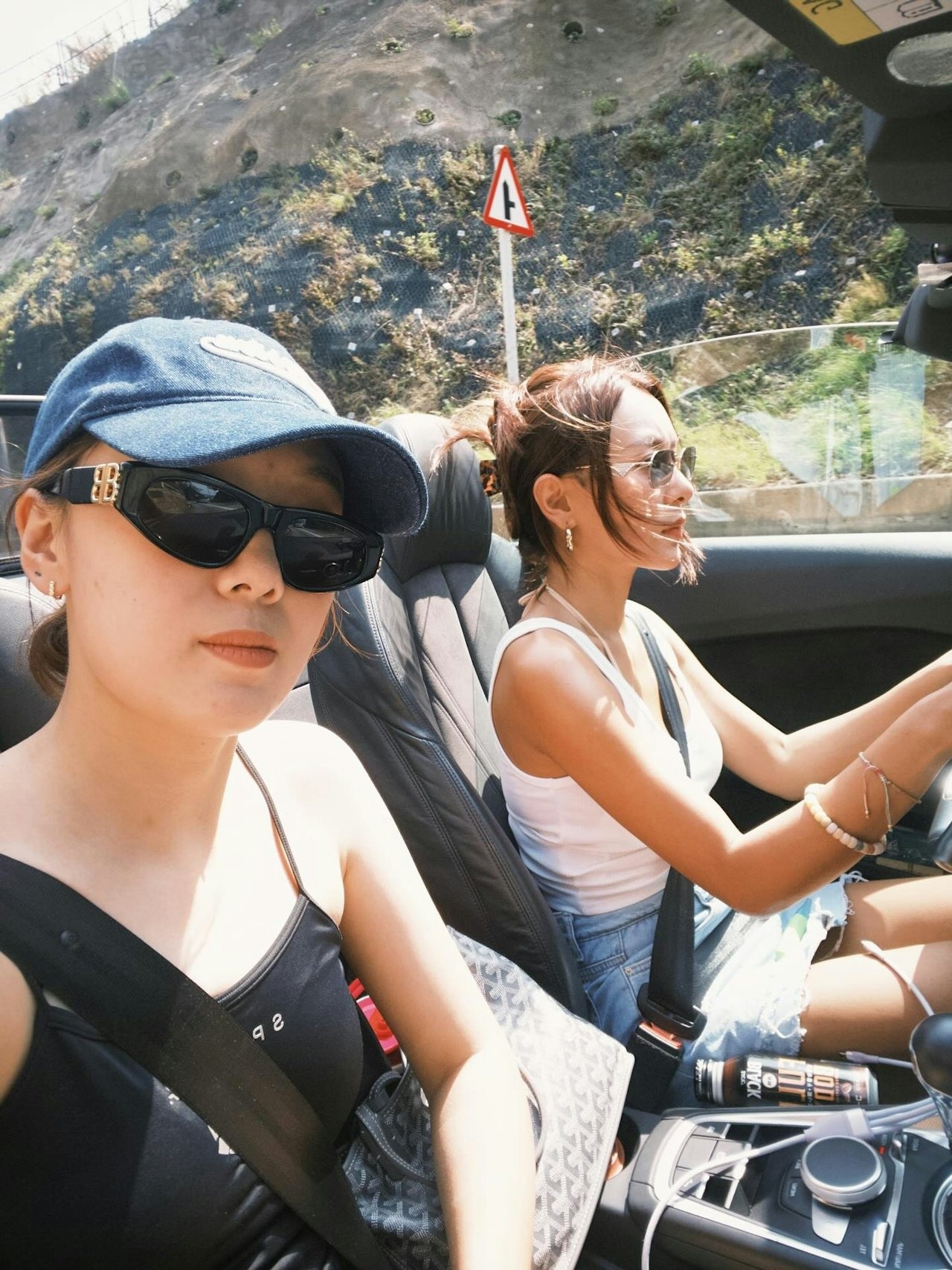 Ở một bức ảnh khác, diễn viên cùng bạn thân lái xe mui trần tắm nắng. Người hâm mộ bày tỏ thích thú khi Hà Bội Du thay đổi hình tượng với làn da rám nắng khỏe khoắn, thay vì trắng hồng như trước.