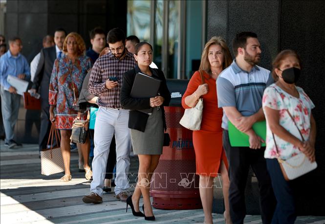 Người tìm việc xếp hàng tại Hội chợ việc làm ở Sunrise, bang Florida (Mỹ). Ảnh minh họa: AFP/TTXVN