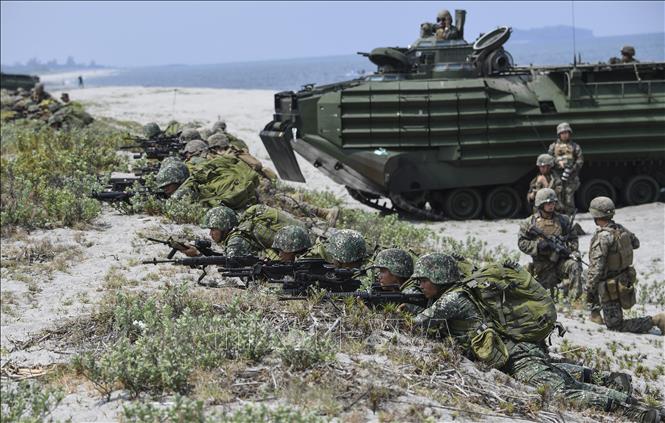 Binh sĩ Mỹ và Philippines tham gia một cuộc tập trận chung tại Philippines năm 2018. Ảnh tư liệu: AFP/TTXVN