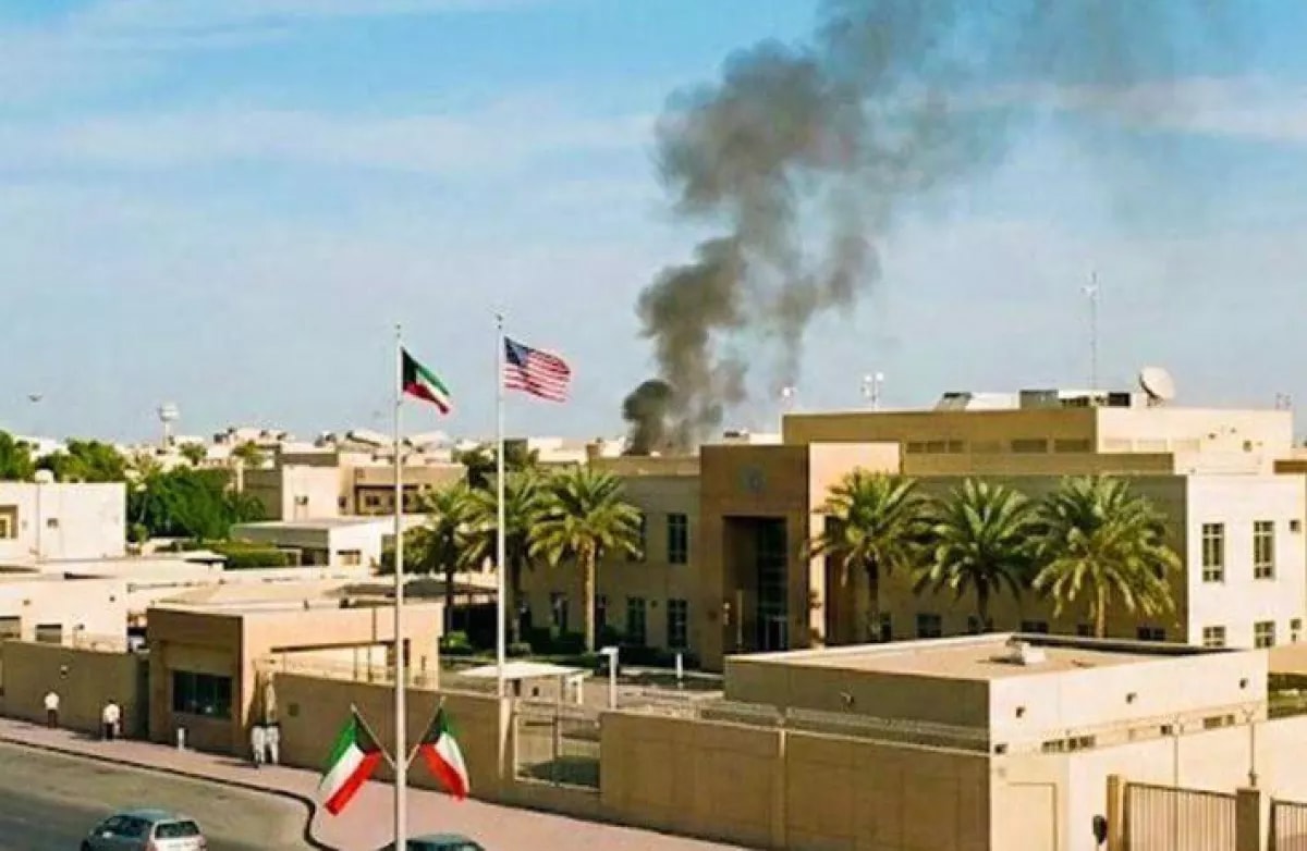Khói bốc lên từ tòa nhà Đại sứ quán Mỹ ở Kuwait sau một vụ tấn công. Ảnh: Caspian Post