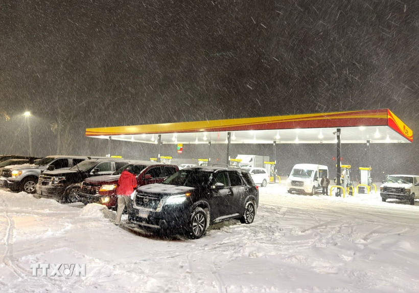 Tuyết phủ kín một trạm xăng tại bang Louisiana, trong đợt bão tuyết đầu tiên của mùa Đông. (Ảnh: Ngọc Quang/TTXVN)