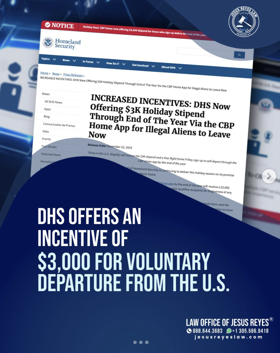 Bộ An ninh Nội địa Mỹ thông báo sẽ tăng gấp 3 lần khoản trợ cấp dành cho những người di cư chọn tự nguyện “trục xuất” khỏi Mỹ, lên mức 3.000 USD. Ảnh: INSTAGRAM
