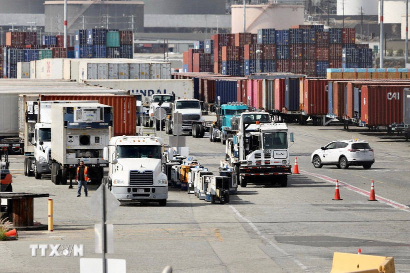 Quang cảnh cảng hàng hóa Long Beach ở California (Mỹ). (Ảnh: THX/TTXVN)