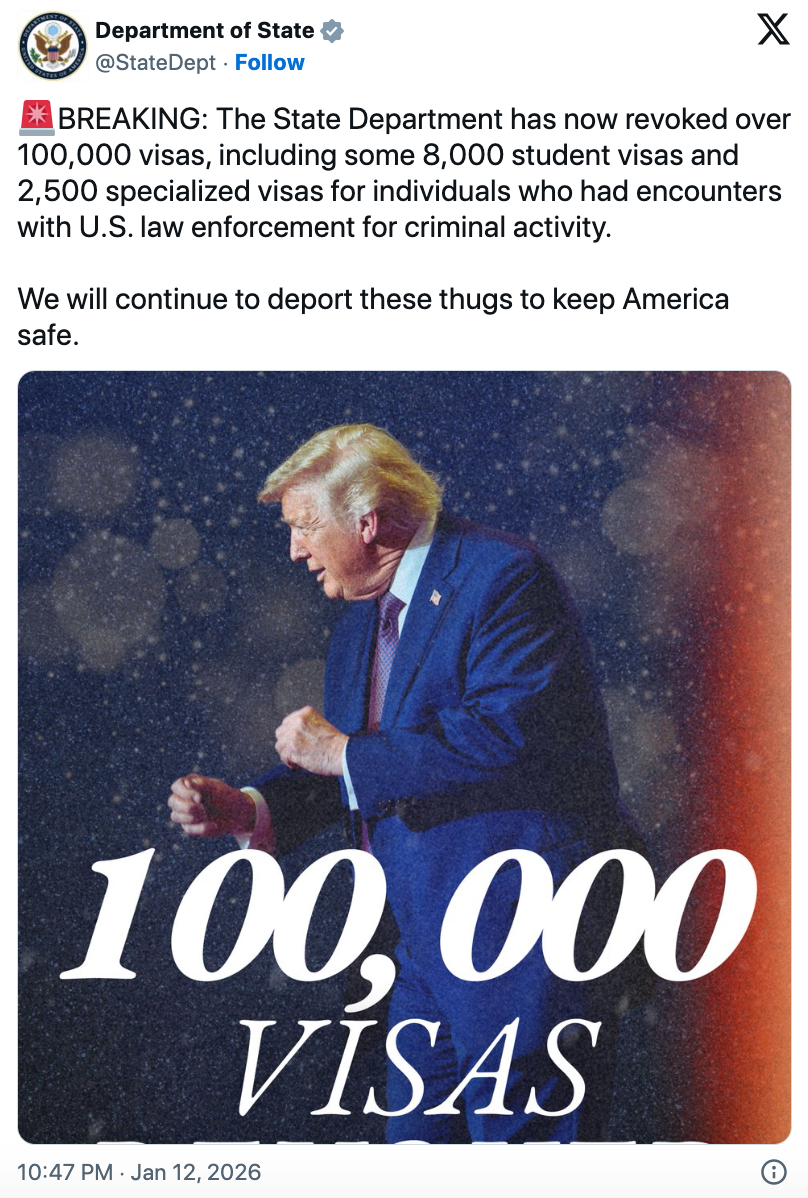 Kể từ đó, Bộ Ngoại giao Mỹ đã hủy thị thực của sinh viên nước ngoài vì nhiều lý do khác nhau, không chỉ liên quan đến vi phạm pháp luật mà còn bao gồm các phát ngôn bị cho là đi ngược lợi ích đối ngoại của Mỹ, trong đó có những tuyên bố liên quan đến Israel và một số nhân vật chính trị gây tranh cãi.