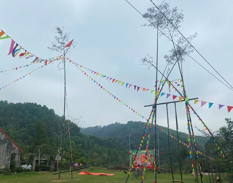 Dựng cây nêu trong Tết Nguyên đán cổ truyền.