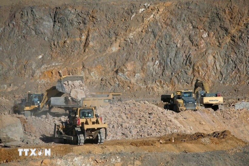 Máy móc hoạt động tại mỏ khai thác đất hiếm ở Mountain Pass, California, Mỹ. Ảnh: REUTERS/TTXVN