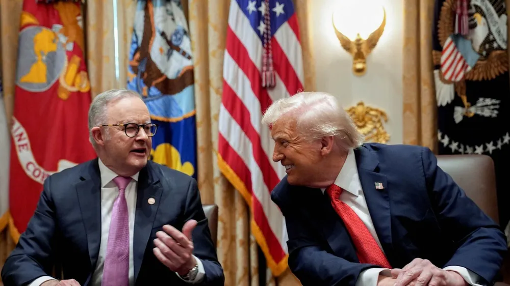 Tổng thống Mỹ Donald Trump (phải) và Thủ tướng Úc Anthony Albanese gặp nhau tại Nhà Trắng ngày 20-10. Ảnh: BLOOMBERG
