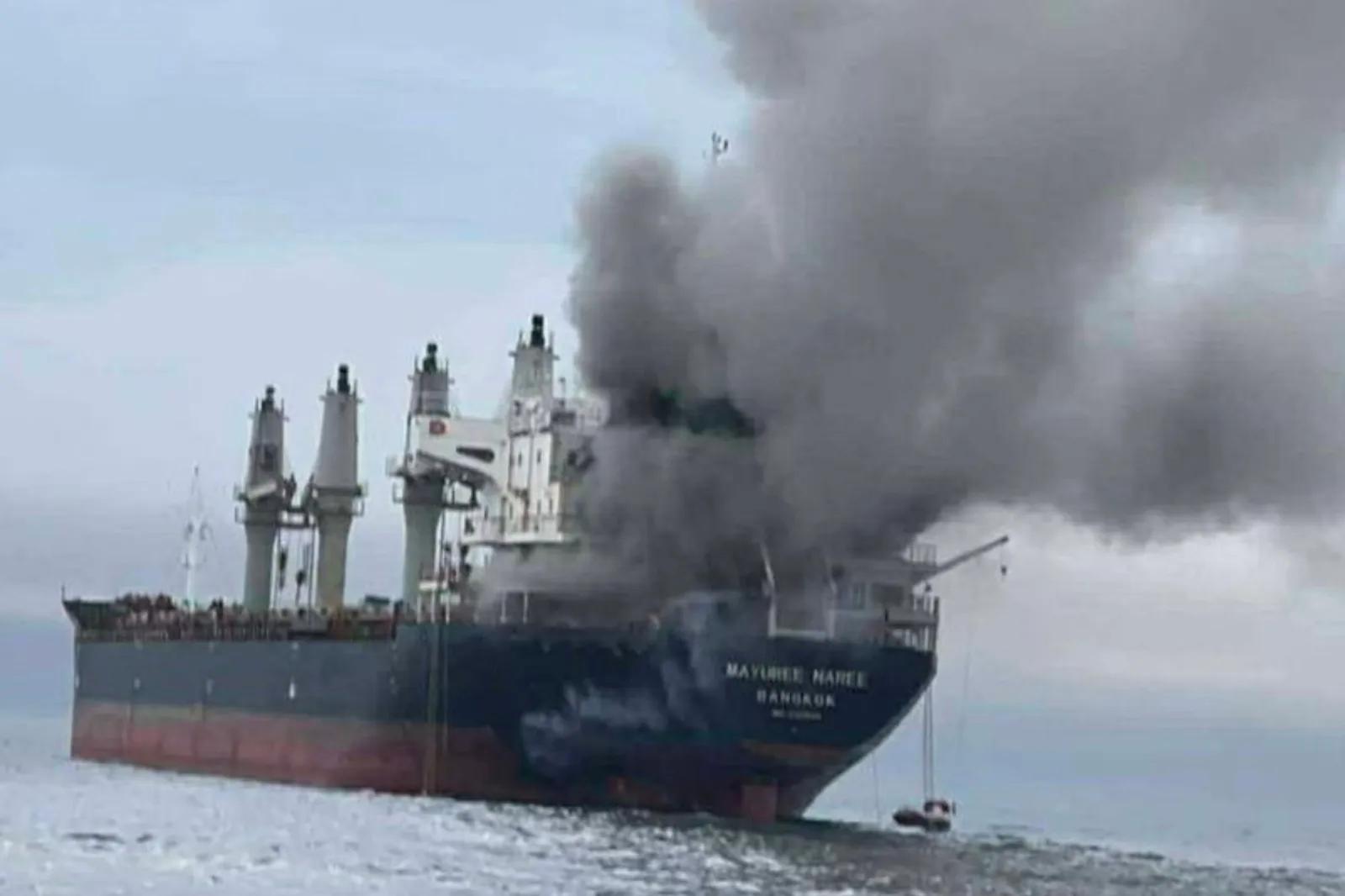 Tàu chở hàng Mayuree Naree của Thái Lan bị tấn công ở eo biển Hormuz, ngày 11-3. Ảnh: Royal Thai Navy
