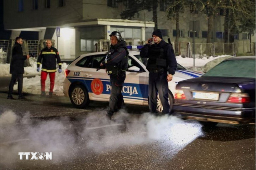 Cảnh sát được triển khai tại hiện trường vụ nổ súng ở thị trấn Cetinje thuộc khu vực Tây Nam Montenegro, ngày 1/1/2025. (Ảnh: Reuters/TTXVN)