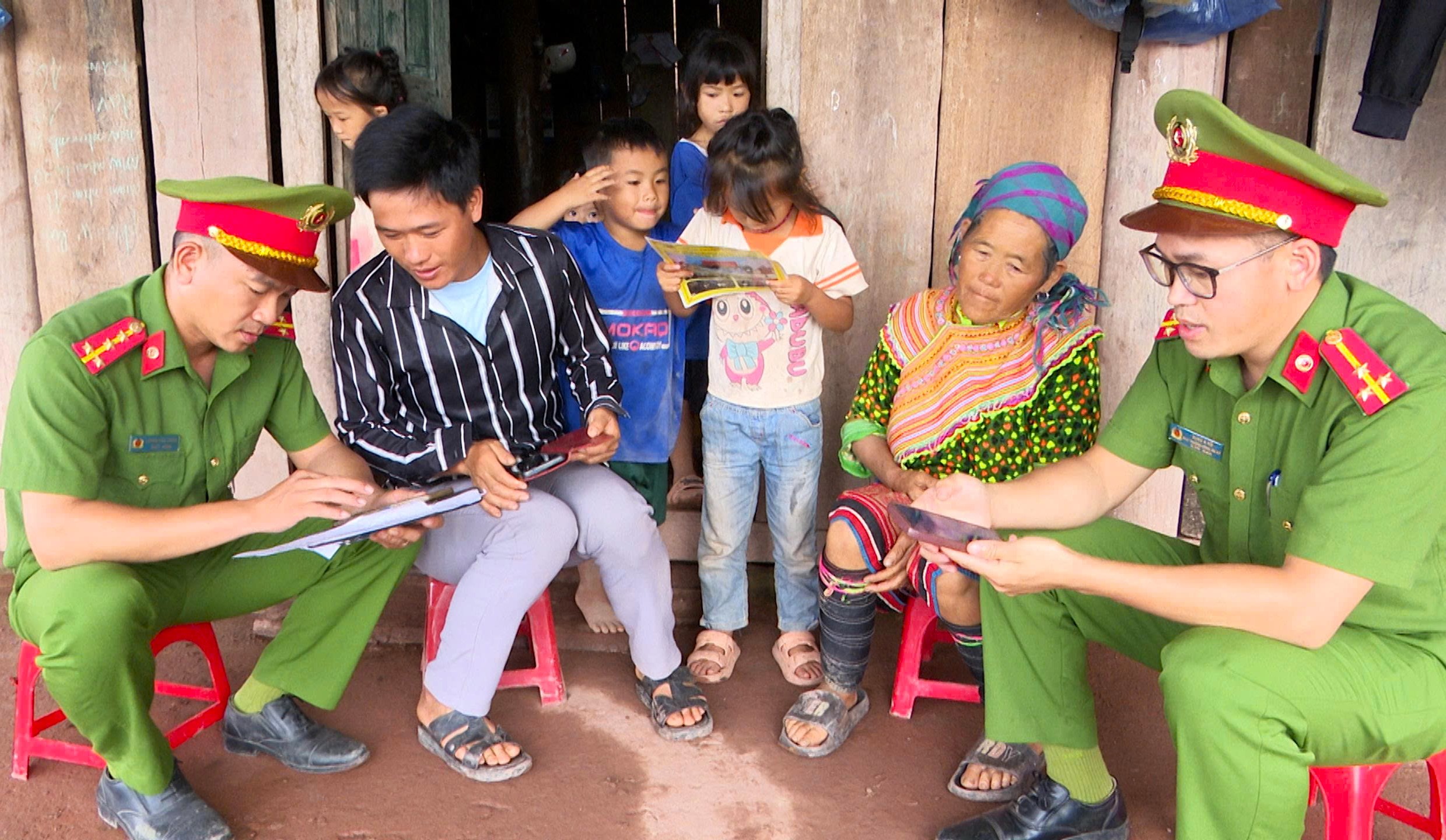 Cán bộ Công an xã Nà Bủng tuyên truyền người dân nâng cao nhận thức về phòng, chống ma túy.