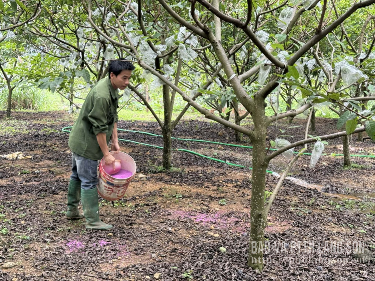 Người dân thôn Bãi Danh, xã Cai Kinh bổ sung phân bón cho cây na sau bão