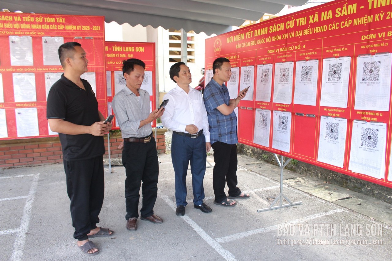 Chỉ bằng điện thoại thông minh, người dân xã Na Sầm dễ dàng quét mã QR tra cứu thông tin danh sách cử tri bầu cử đại biểu Quốc hội khóa XVI và đại biểu HĐND các cấp nhiệm kỳ 2026 - 2031. Các mã QR được xã Na Sầm tạo ra từ dữ liệu cử tri được tổng hợp theo từng khu vực bỏ phiếu, đồng thời được chia sẻ tới các thôn, tạo điều kiện thuận lợi cho người dân trong tra cứu, tìm hiểu.