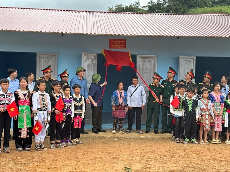 Bộ Chỉ huy Quân sự tỉnh Điện Biên tổ chức bàn giao nhà mới cho các hộ dân bị lũ quét, sạt lở đất. Ảnh: Thủy Lan