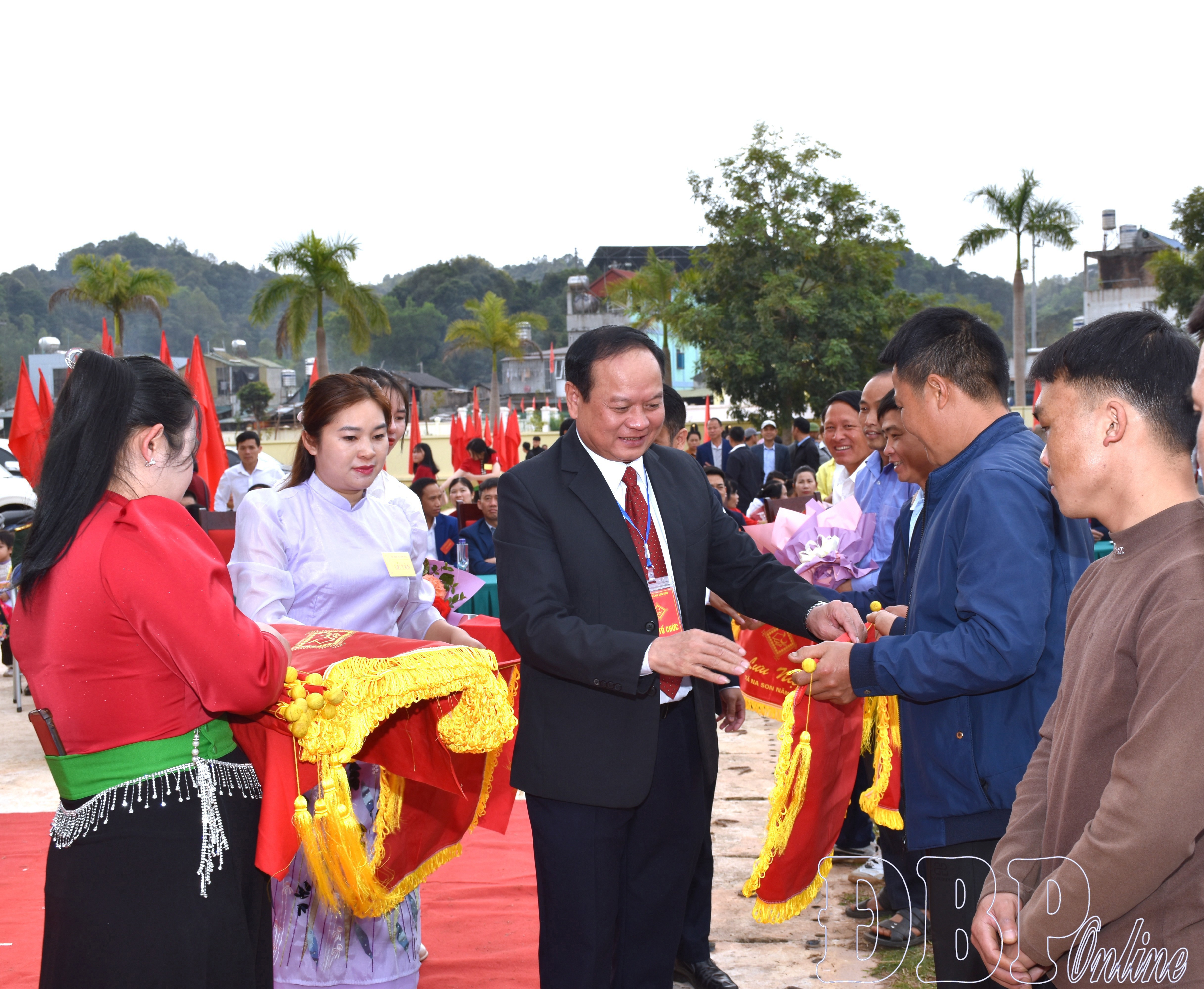 Ban Tổ chức Hội xuân Bính Ngọ xã Na Son tặng Cờ lưu niệm cho các đoàn vận động viên tham gia hoạt động văn hóa, văn nghệ, thể dục, thể thao.