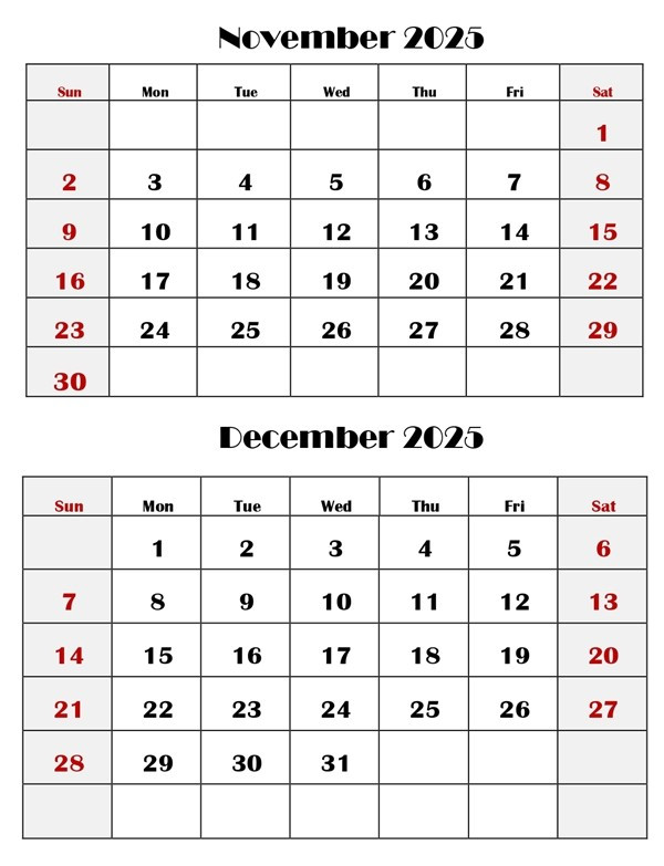 Từ giờ đến cuối năm (dương lịch) còn 5 cuối tuần nữa. Ảnh: Printable Tree.