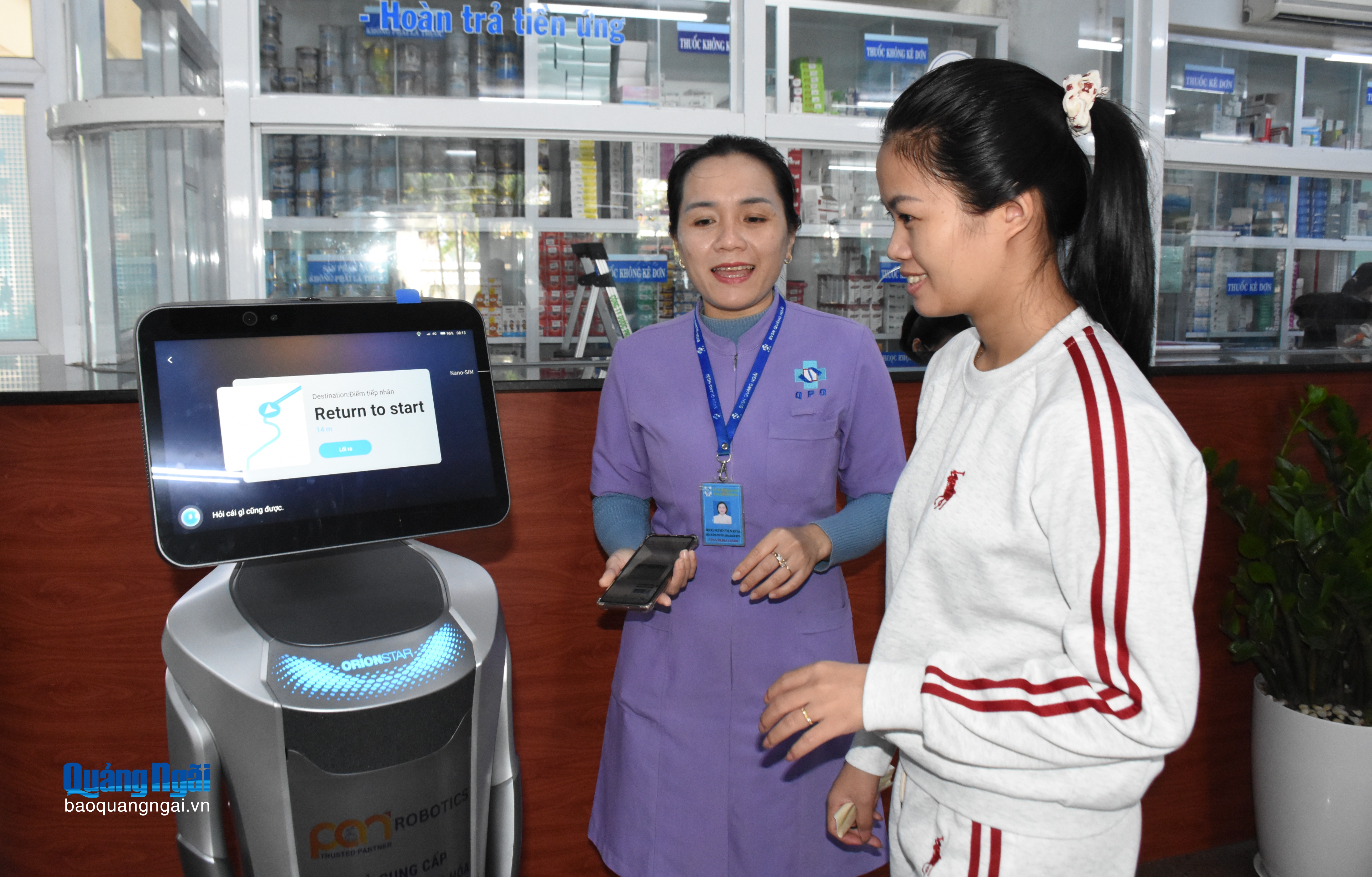 Năm 2025, Bệnh viện Sản - Nhi tỉnh là bệnh viện đạt điểm kiểm tra chất lượng cao nhất tỉnh. Trong ảnh: Bệnh viện Sản - Nhi tỉnh ứng dụng robot AI trong tiếp đón, hướng dẫn bệnh nhân. Ảnh: Ý THU