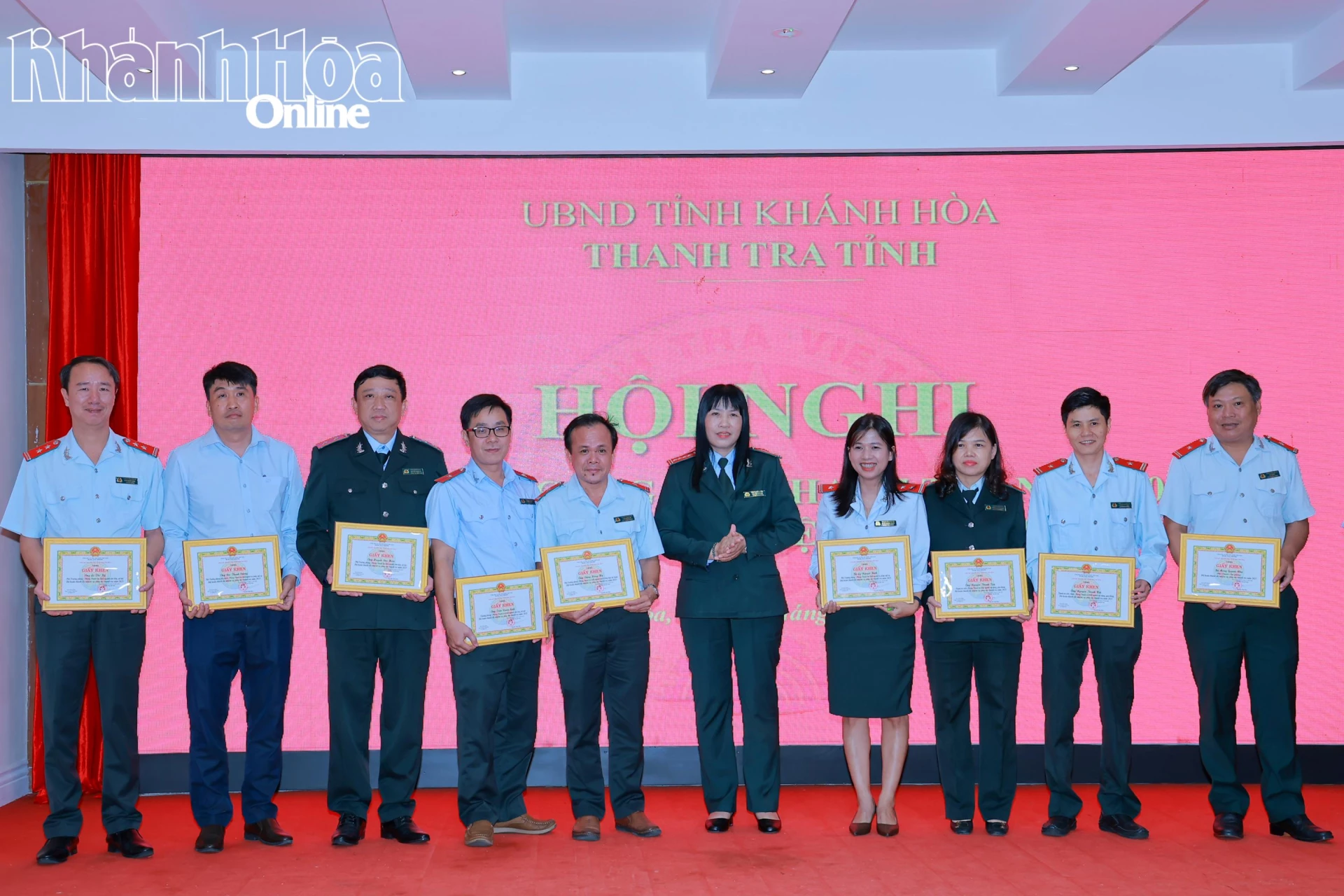 Lãnh đạo Thanh tra tỉnh trao giấy khen cho đại diện các tập thể.