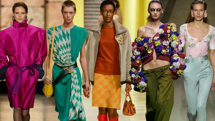 Dù phong cách quyền lực và phom dáng điêu khắc cho thấy sự dịch chuyển sang tinh thần vui nhộn hơn, nhưng một sự hồi sinh của thập niên 1980 sẽ không trọn vẹn nếu thiếu đi màu sắc. Có ba xu hướng màu sắc chính cần lưu ý. Theo WGSN, đến năm 2027, màu đỏ sẽ chiếm khoảng 30% tỷ lệ xuất hiện trong hình ảnh, màu xanh lá đạt 39,7% và màu tím ở mức 16,9%. Sau một năm ngập tràn các gam trung tính, sự trở lại của màu sắc mang đến cảm giác tươi mới, như một luồng gió mới sau giai đoạn thiếu vắng sắc màu của năm trước.