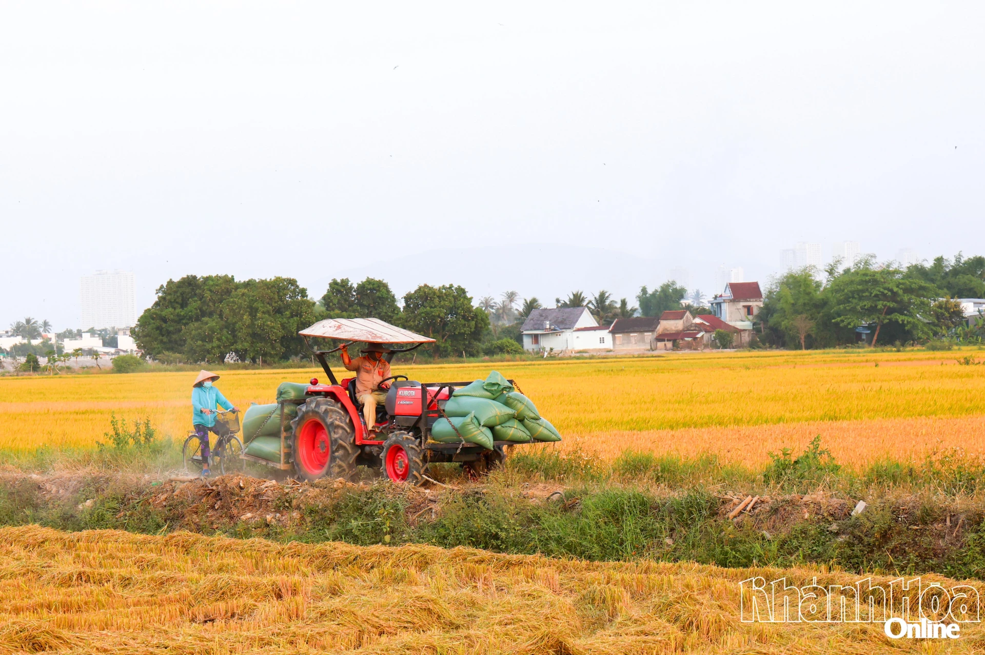 Nông dân phường Bắc Nha Trang thu hoạch lúa.