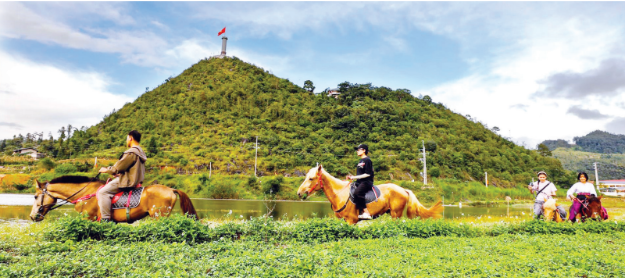 Du khách trải nghiệm cưỡi ngựa trên vùng cao.