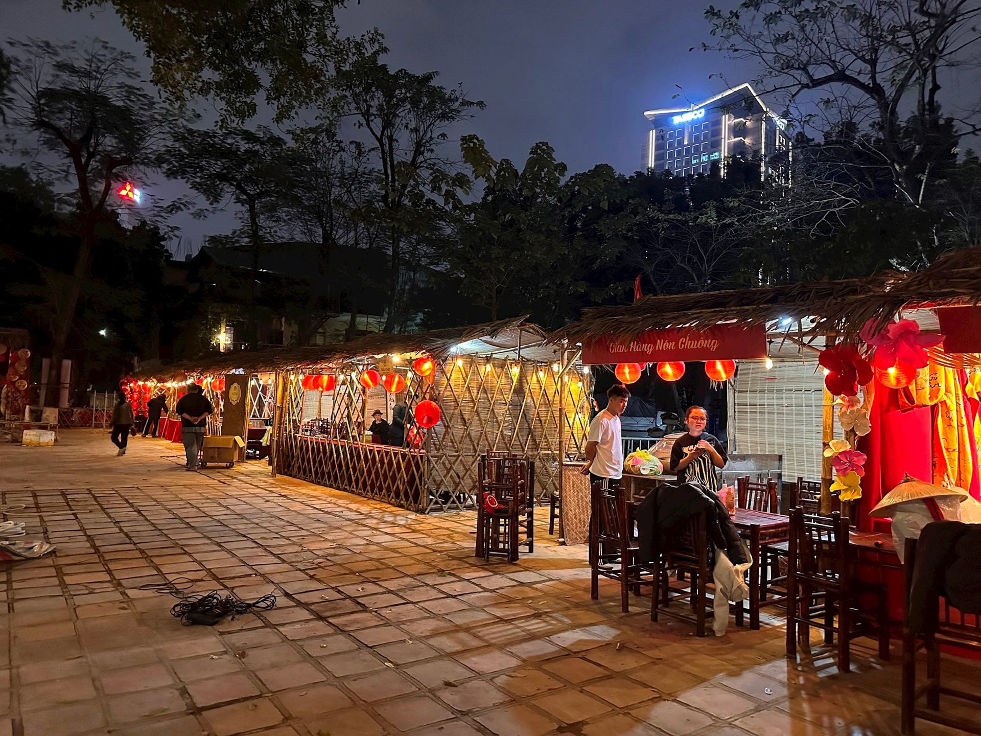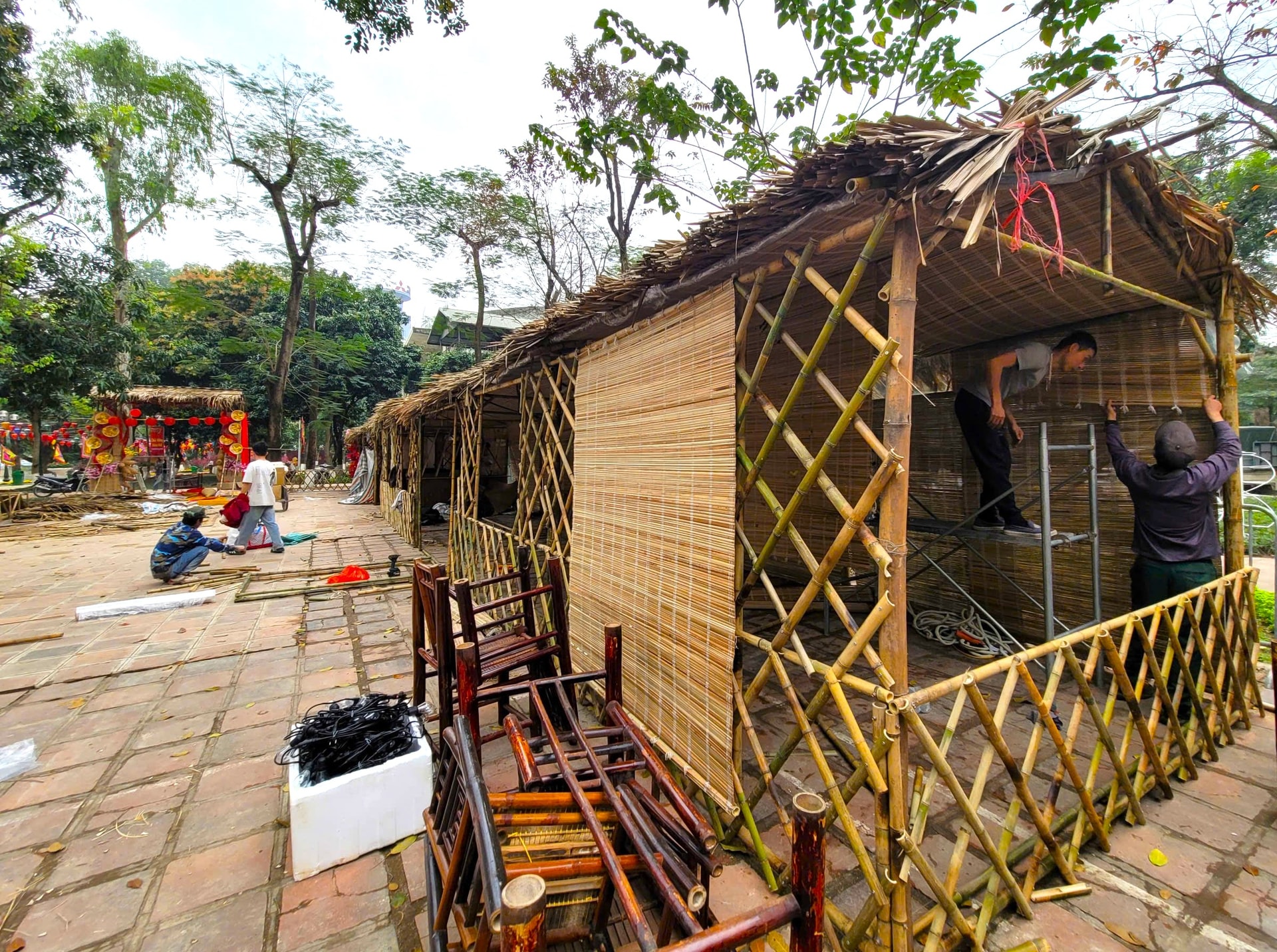 Chuỗi gian hàng phục vụ nhân dân vui xuân, đón Tết trong không gian văn hóa đang được gấp rút thực hiện. Không gian văn hóa sẽ mở cửa từ 28 Tết, từ 7h -19h, vận hành thí điểm trong 1 tháng, riêng đêm Giao thừa Tết Nguyên đán Bính Ngọ sẽ mở đến 3h sáng. Ảnh: MH