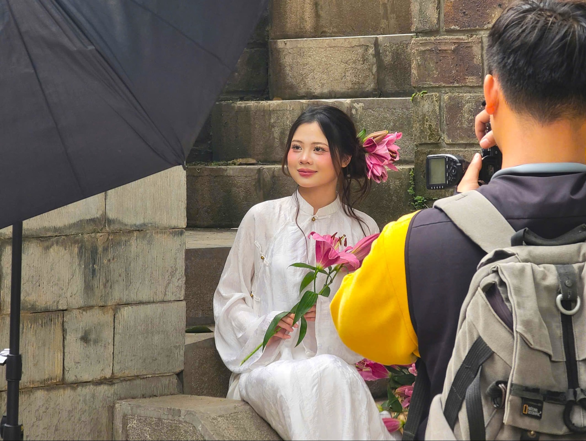 Không gian đền Voi Phục là nơi được nhiều bạn trẻ chọn để chụp những bộ ảnh Tết, ảnh cổ phục dịp cuối năm. Ảnh: MH
