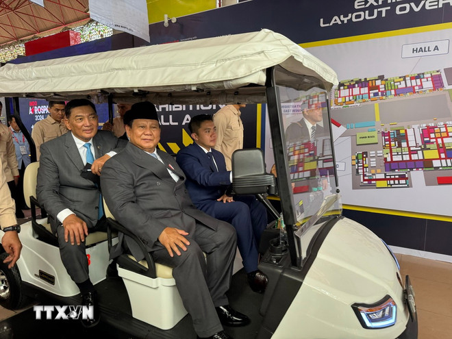 Tổng thống Indonesia, Prabowo Subianto tại Triển lãm và Diễn đàn Quốc phòng Indo Defence ở Jakarta, tháng 6/2025. (Ảnh: Đỗ Quyên/TTXVN)