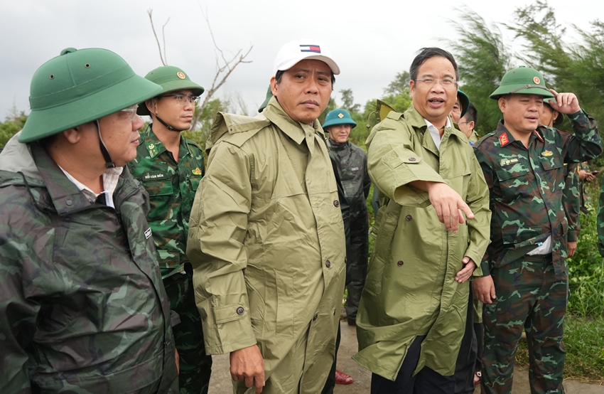 Phó Bí thư Thường trực Thành ủy Phạm Đức Tiến kiểm tra, chỉ đạo công tác ứng phó mưa bão tại vùng ven biển xã Vinh Lộc