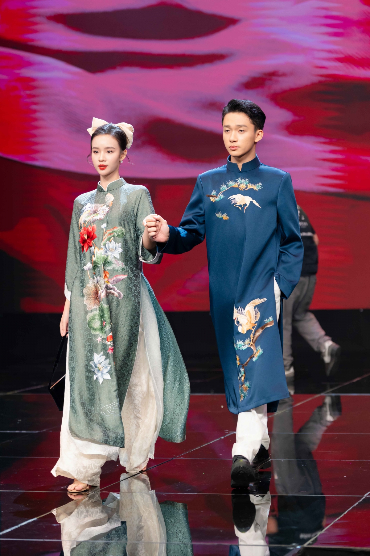 Sự xuất hiện của diễn viên trẻ Sơn Tùng mang đến nét tươi mới cho show diễn. Lần đầu sải bước trong áo dài, anh cho biết cảm thấy tự hào khi góp phần lan tỏa vẻ đẹp áo dài Việt đến thế hệ trẻ.