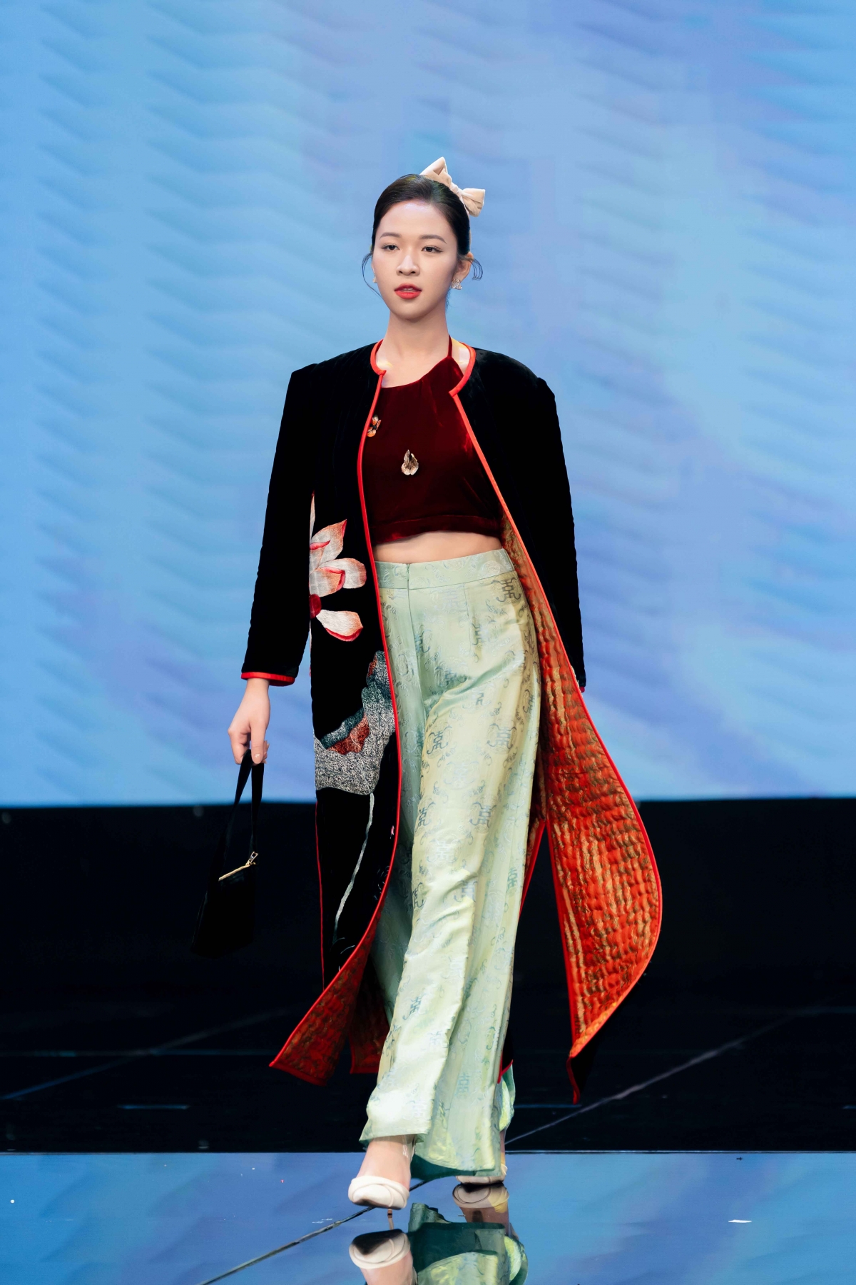 Điểm nhấn của “Tơ xưa” nằm ở các mẫu blazer cách tân từ lụa Việt, kết hợp họa tiết thêu tay tỉ mỉ, tạo nên vẻ thanh lịch, độc đáo. Trên nền vải mềm mại, họa tiết hoa, chim, rồng phượng được thêu tay sống động, thể hiện tình yêu quê hương và tinh thần dân tộc. “Thời trang không chỉ là quần áo, mà là cách tôn vinh giá trị thủ công truyền thống bằng hơi thở hiện đại”, NTK chia sẻ.