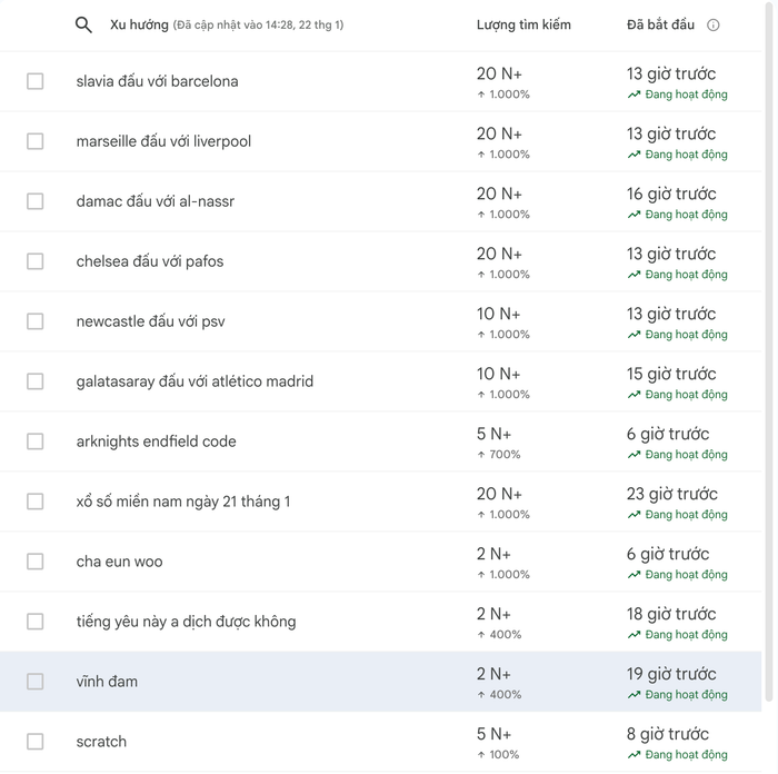 Đáng chú ý, tên của Vĩnh Đam nằm trong nhóm được tìm kiếm nhiều nhất, chỉ xếp sau các trận đấu bóng đá và một số nhân vật nổi tiếng khác trong cùng thời điểm. Điều này cho thấy mức độ tò mò và quan tâm rõ rệt của công chúng đối với gương mặt mới trong phim Tết của Trấn Thành.