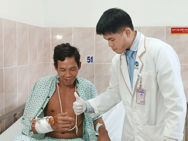 Hiện tại, anh B. đang được tiếp tục chăm sóc vết thương tại Khoa Chỉnh hình Vi phẫu. Dự kiến, anh sẽ còn trải qua cuộc phẫu thuật kết hợp xương cố định và sau đó là tập vật lý trị liệu phục hồi chức năng.