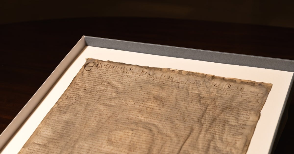 1. Được gọi là "văn kiện quan trọng nhất thế giới", một ấn bản hiếm hoi từ 710 năm trước của Đại Hiến chương Magna Carta đã được bán tại Sotheby's với giá hơn 21 triệu USD. Được ban hành lần đầu tiên vào năm 1215 trong bối cảnh khủng hoảng chính trị lan tràn tại nước Anh, văn kiện này là dấu mốc quan trọng vạch rõ giới hạn quyền lực của người cầm quyền. Ảnh: UPI.