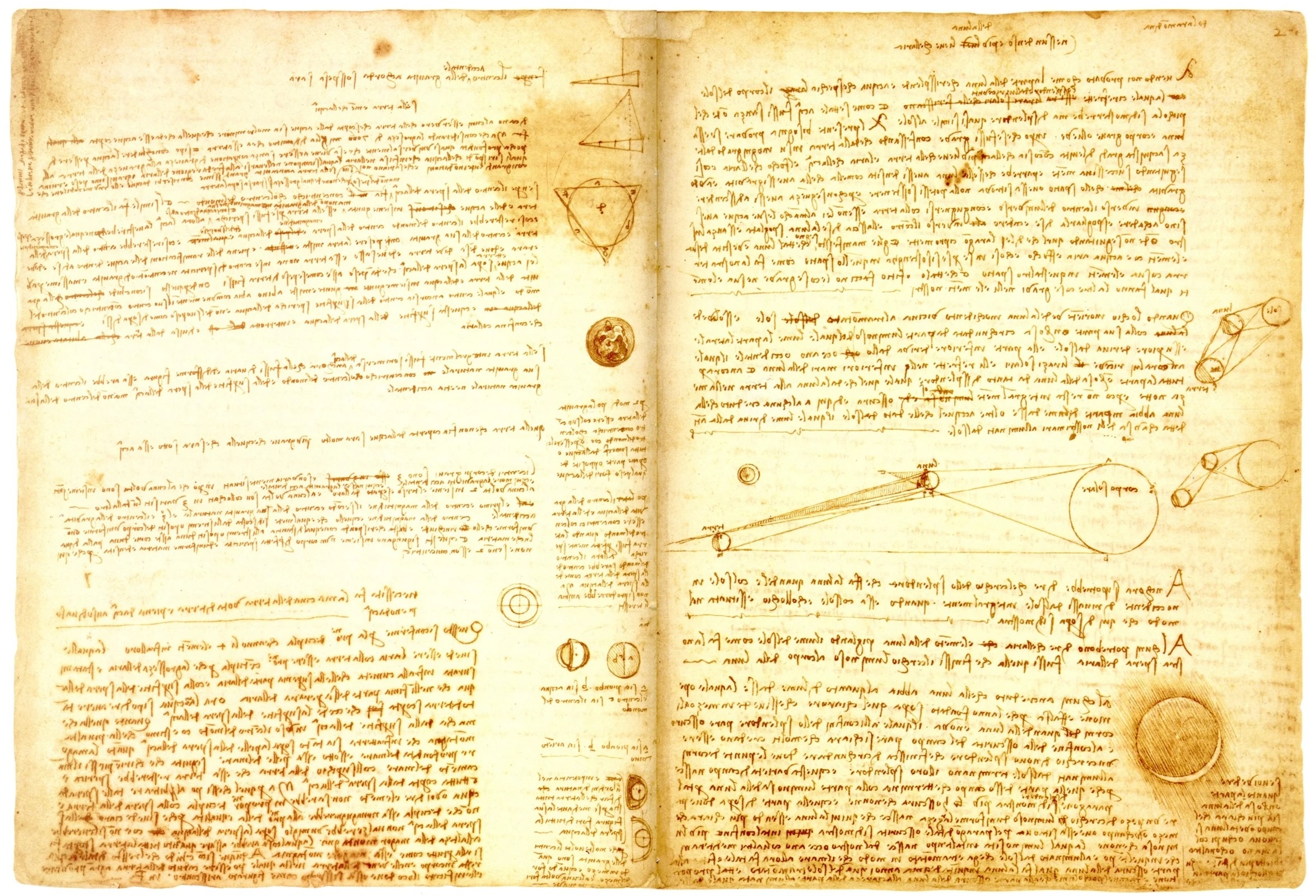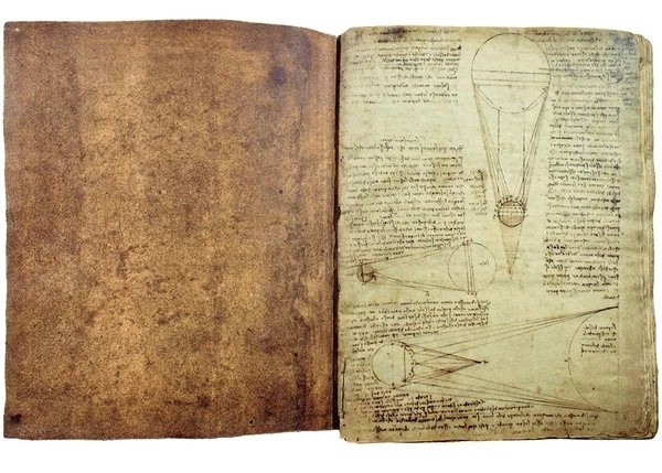 Cuốn sách từ thế kỷ 16 này có nhiều phát minh, thể hiện qua hình vẽ và chữ viết về các vật thể dưới những hình thái tồn tại khác biệt. Nội dung của cuốn sách cũng liên quan đến chiến tranh quân sự, địa chất, thiên văn học và các chủ đề khác. Ảnh: Arthive.
