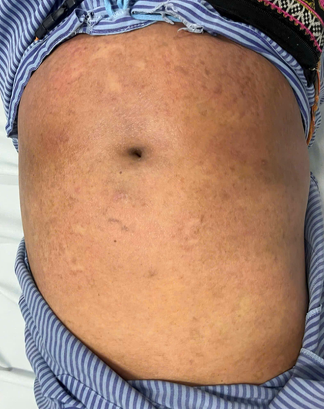 Bệnh nhân bị nấm da toàn thân vì dùng thuốc không rõ nguồn gốc.