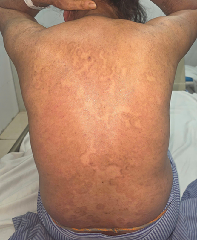 Từ nấm da nhẹ bệnh nhân dùng thuốc không rõ nguồn gốc khiến tổn thương lan toàn thân.