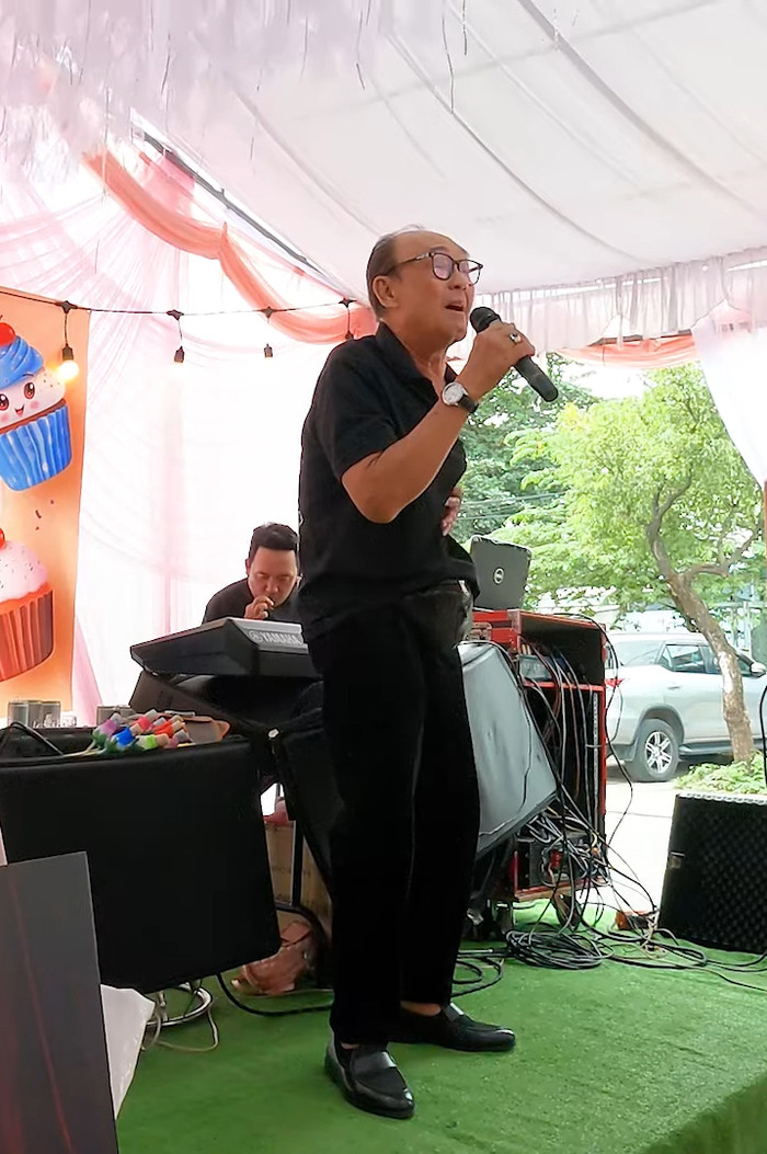 Dù đã bước vào tuổi U80 và vừa trải qua cơn bạo bệnh, nam danh hài vẫn biểu diễn hết mình, khuấy động không khí buổi tiệc. Ông còn đội tóc giả để pha trò khiến khán giả bên dưới thích thú. Có thể thấy, Duy Phương vẫn đang miệt mài làm việc để lo cho gia đình và con nhỏ.