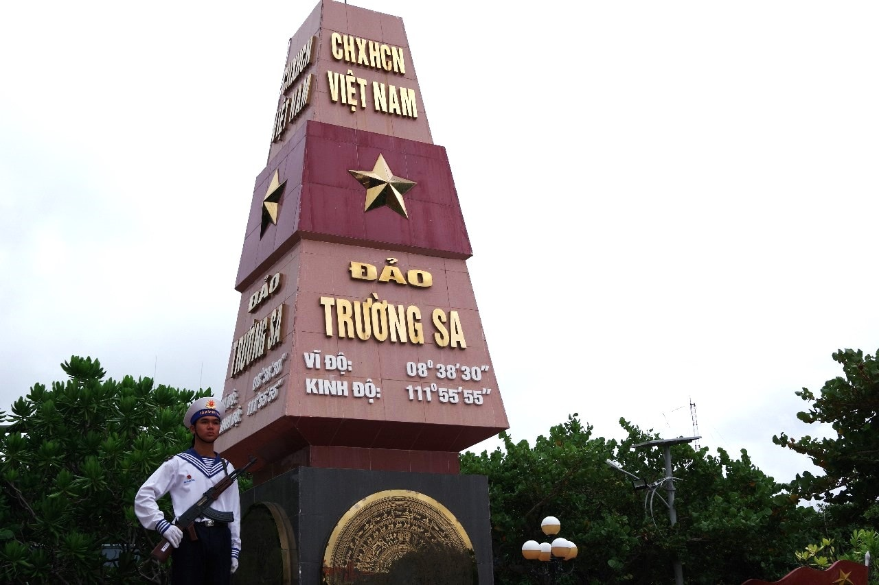 Chiến sĩ Hải quân canh gác bên cột mốc chủ quyền trên đảo Trường Sa (đặc khu Trường Sa, tỉnh Khánh Hòa). Ảnh minh họa/hanoimoi.vn